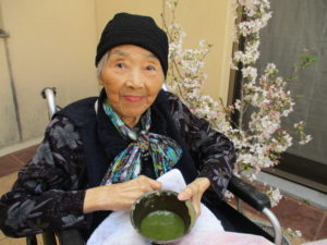 職員が点てたお抹茶と、手作り白玉きな粉を召し上がっていただきました。