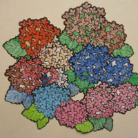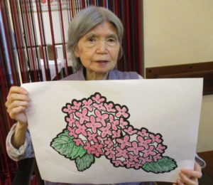 紫陽花の絵はハサミで切り取り壁に掲載しました~♬