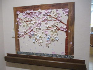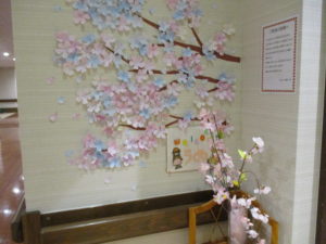 今年の桜は見ごろも過ぎましたが、フロアー内の職員手作りの桜🌸はまだ満開です。