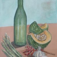 今回の絵画は、季節のアスパラガスや南瓜が描かれています。
