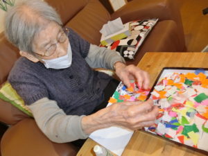 折り紙の色を選抜して、のりで貼りつけていく作業だけでも