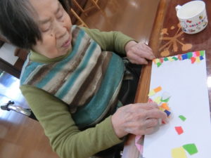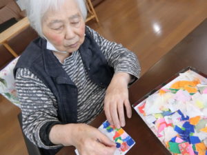 折り紙の色を選抜して、のりで貼りつけていく作業だけでも