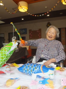 5月5日は子どもの日です。昔を思い出して鯉のぼりの魚釣りを行いました🎏