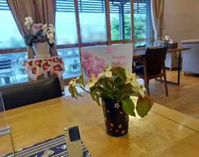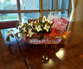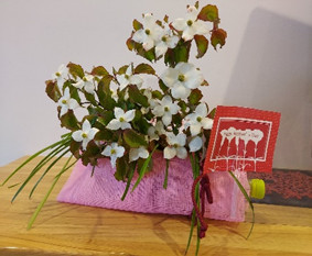 折角なので、ヤマボウシの花を飾って、母の日のメッセージカードを作って、添えてみました。
