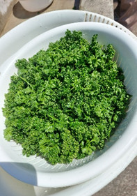 毎年、パセリを摘んで、電子レンジを使ってパセリ粉を作っています。