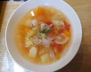 残り野菜でミネストローネ作りました。