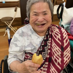芋を揚げ始めるといい匂いがユニット内に広がり皆様ワクワク(^▽^)/