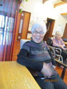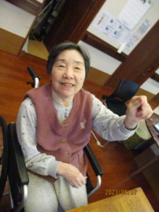 カメラを向けると「体操してる時に映すとね~~」と手を止めていい表情で映って下さりました。