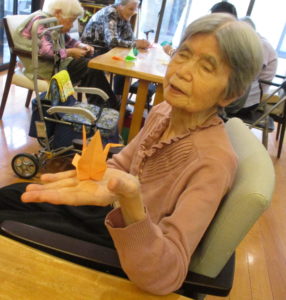 今日のレクレーション活動は・・・折り紙で鶴を作ってみました🥰