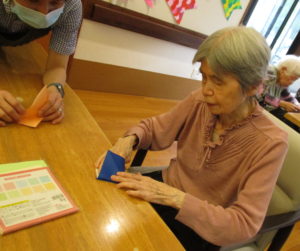 今日のレクレーション活動は・・・折り紙で鶴を作ってみました🥰