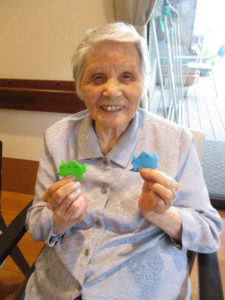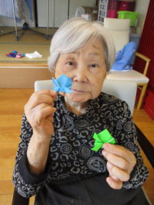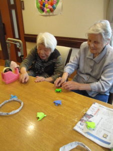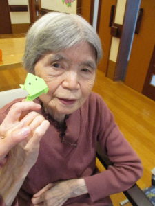 今日のレクレーション活動は・・・折り紙で作ったカエルを使って遊んでみました🐸