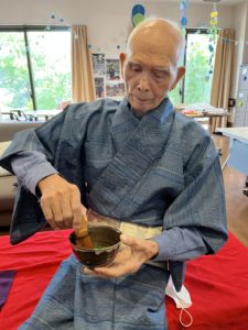 美味しいお抹茶を甘い和菓子でいただく食レクを行いました。