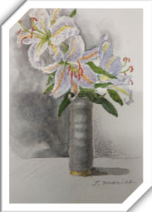 季節の花として、バラやカサブランカを描いたもの。