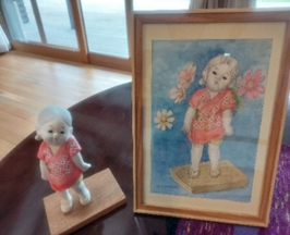 博多人形を、絵に描かれたものです。