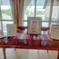 奥のリビングのテーブルに、幼子達の絵画を並べてみました。