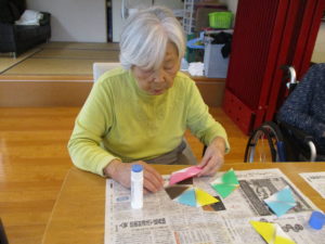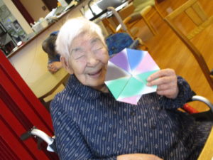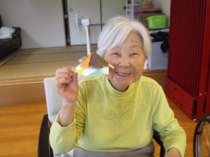 「出来るどかね?」「一緒に作って」とスタッフと共に準備された折り紙を使って作成しましたよ😊
