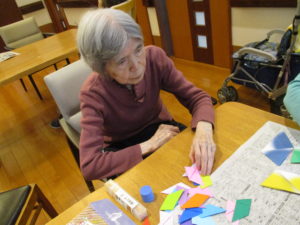 今日のレクレーション活動は・・・折り傘を折り紙で作りました!