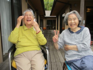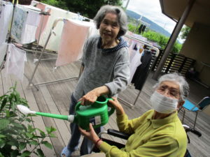 「一人でジョウロを持つのは重いから一緒に持ちましょう」とご利用者様同士話をされて一緒に持たれていました😝