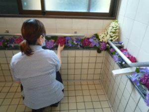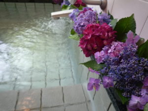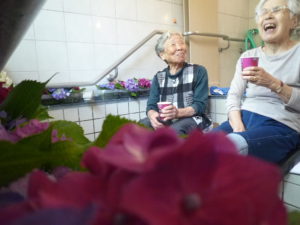 本日はそんな紫陽花を利用者様に見て頂き、癒されてもらおうと紫陽花風呂を開催致しました。