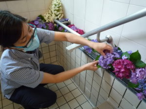 本日はそんな紫陽花を利用者様に見て頂き、癒されてもらおうと紫陽花風呂を開催致しました。