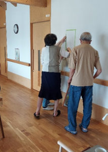 入居者様が長い廊下をゆっくりと歩きながら、絵を楽しめるちょっとしたギャラリーになりました。