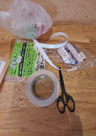 壁に建築用のマスキングテープを張り、その上から両面テープで固定。