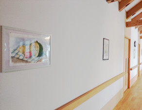 入居者様が長い廊下をゆっくりと歩きながら、絵を楽しめるちょっとしたギャラリーになりました。