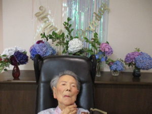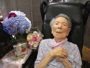 職員からお誕生日プレゼントをお渡しして、ハッピーバースデーの歌を唄うと、うっすら目に涙が・・・