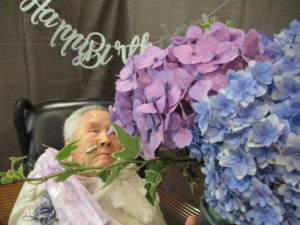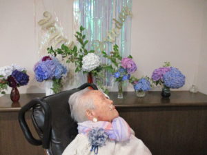 職員からお誕生日プレゼントをお渡しして、ハッピーバースデーの歌を唄うと、うっすら目に涙が・・・