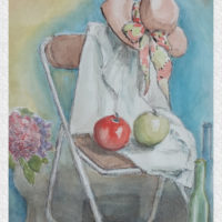 麦わら帽子とあじさいが今の季節にぴったりです。
