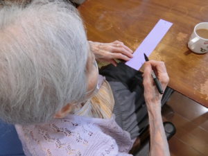 『なんて書こうか』と悩みながら、お願い事を書かれていました📝