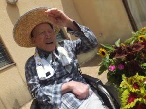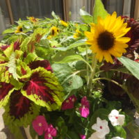 中庭に出て頂くと、「この花は、家に植えてたよ。」「こんなに小さいひまわり🌻かわいいね。」等と