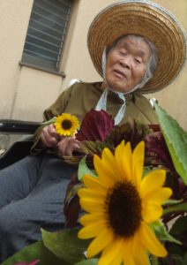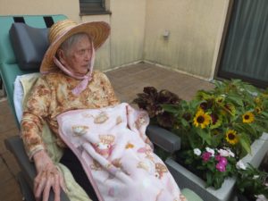 リビングよりひまわりのつぼみを見ながら「もうすぐ咲きそうね。」と楽しみにされていました。