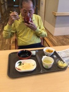 職員がセレクトメニューである事を伝えると「どっちば選んだとだっけ?」「楽しみー✨」と皆さん待ち遠しい様子🤤