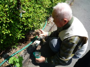 ご利用者様は手慣れた様子で苗植えを行い、あっという間に終わり、その後、たっぷりと水やりを行っています。