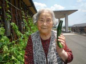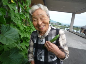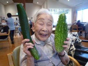 収穫した夏野菜は、午後のレクリエーションの景品としてお配りしたり、欲しい方にお配りして大変喜ばれています。
