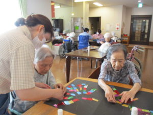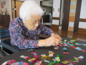 キラキラ✨した色とりどりの折り紙を皆さんで貼り付けて頂きました(^_-)-☆
