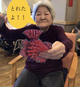 ケアポート益城の魚たちは、とっても活きがいいので、釣り上げるのはなかなか