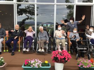外気浴⛅は、ユニットのウッドデッキに出て、お花や遠くの山々の景色を楽しみました。