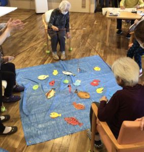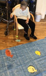 ケアポート益城の魚たちは、とっても活きがいいので、釣り上げるのはなかなか