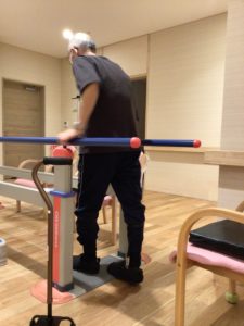 リハ職員が利用者様に合わせて訓練を行います。今回は片麻痺(右麻痺)の利用者様です。