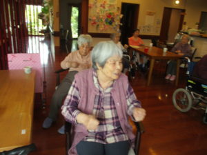 「どこまで腕ばあげなんとね?ここまでしか上げらんよ~」「これでいいですか?」と皆さん張り切って体操しておられます!