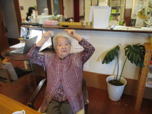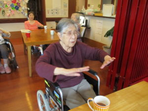 「どこまで腕ばあげなんとね?ここまでしか上げらんよ~」「これでいいですか?」と皆さん張り切って体操しておられます!