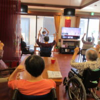 今日のレクレーション活動は・・・皆さんと一緒に体操をしました💪