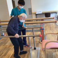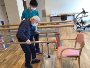 平行棒を利用した歩行訓練。