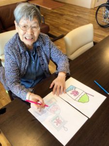 そこで、手の運動と夏の雰囲気を出していただこうと塗り絵をやっていただきました。その様子がこちら💁🏻