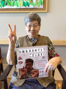誕生日カードを受け取られた後は、誕生日ソングを皆様と一緒に歌い、和やかな雰囲気でお祝いしました。