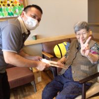 誕生日カードを受け取られた後は、誕生日ソングを皆様と一緒に歌い、和やかな雰囲気でお祝いしました。