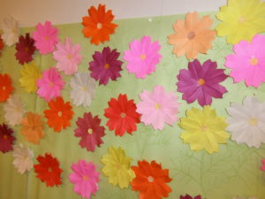 短期の壁面もすっかり秋模様♪ コスモスが咲いています(笑)