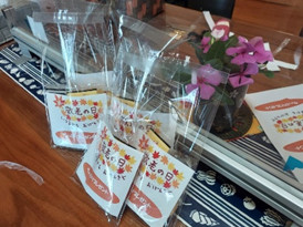 入居者様に手伝っていただき、お菓子の袋詰めです。